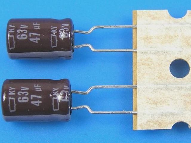 47uF/63V Nippon KY Elektrolytický Kondenzátor - Low ESR, Dlouhá ŽivotnostJedná se o elektrolytický kondenzátor s kapacitou 47uF a napětím 63V. Tento kondenzátor je navržen tak, aby měl nízkou impedanci a dlouhou životnost, což z něj činí ideální volbu pro použití v impulzních zdrojích.