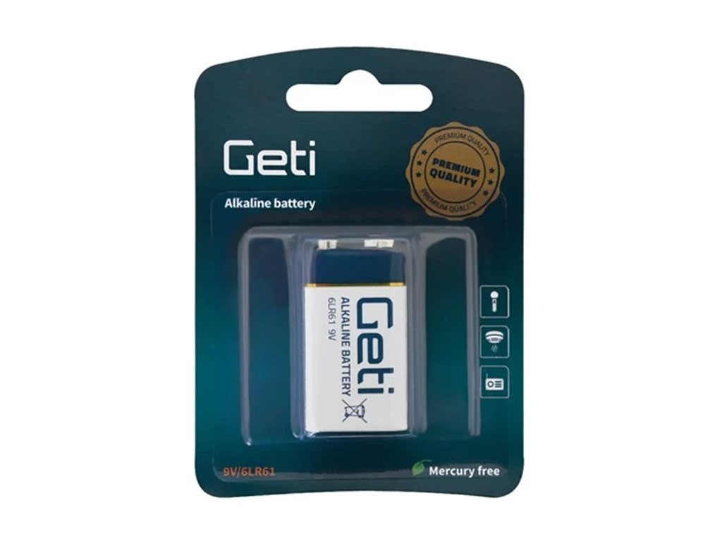 9V Alkalická Baterie Geti 6F22 / 6LR61