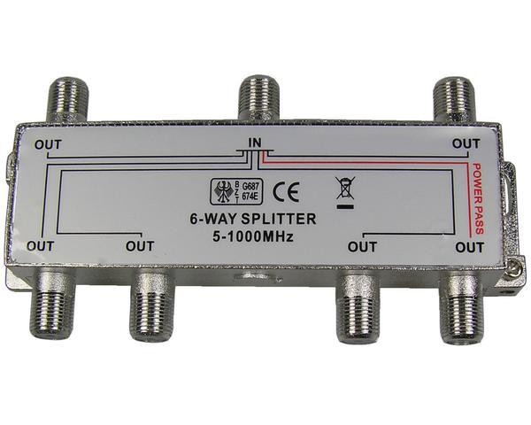Anténní rozbočovač TV 6 výstupů 1xDC pass RO12F konektory, frekvenční rozsah 5 - 1000 MHzAnténní rozbočovač s 6 výstupy je ideální pro rozdělení televizního signálu. Tento model nabízí: