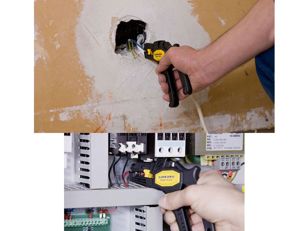 Automatické odizolovací kleště Jokari Super 4 Plus 20050Tyto kleště jsou navrženy pro efektivní odizolování jedno- a vícedrátových vodičů s PVC izolací. S automatickým přizpůsobením nožů průměru kabelu a omezovačem délky v rozmezí 5-15 mm. Boční břit je určen pro vodiče do 2,5 mm².