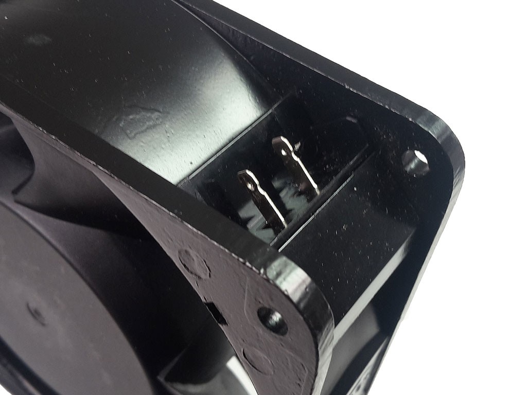 Ventilátor je vybaven kovovou kostrou a faston konektory, což zajišťuje vysokou odolnost a spolehlivost. Je ideální pro různé aplikace a nabízí efektivní chlazení.