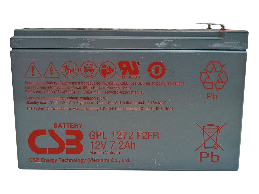 Řada GPL využívá nejnovější Valve Regulated Lead-Acid (VRLA) technologii, která zaručuje životnost 8 až 10 let v režimu „Standby“. Akumulátor GPL1272F2 je navržen pro vysoký výkon a dlouhou životnost. Stejně jako ostatní akumulátory od CSB, i tento model je bezúdržbový, uzavřený a lze jej používat v jakékoli poloze.