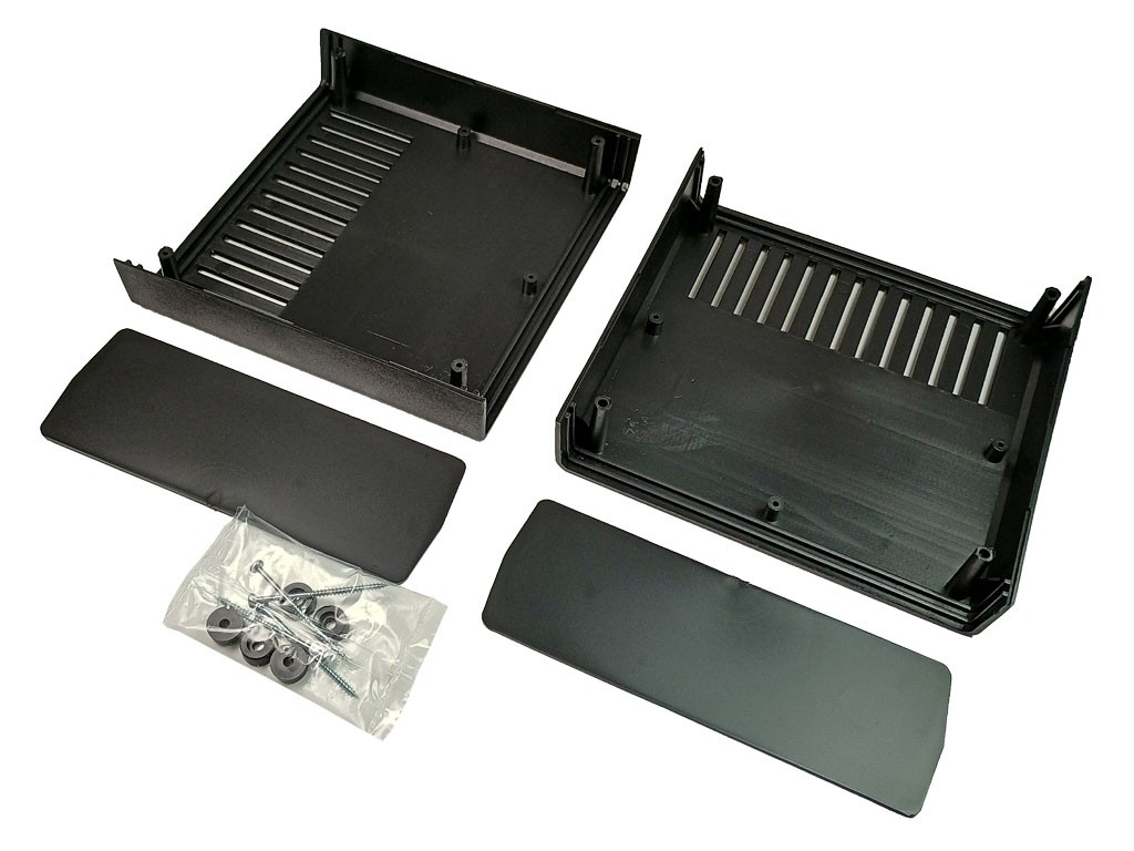 Krabička KP 11 je čtyřdílná větraná konstrukce, která se spojuje čtyřmi vruty. Je ideální pro různé aplikace v oblasti elektroniky a pasivních součástek.