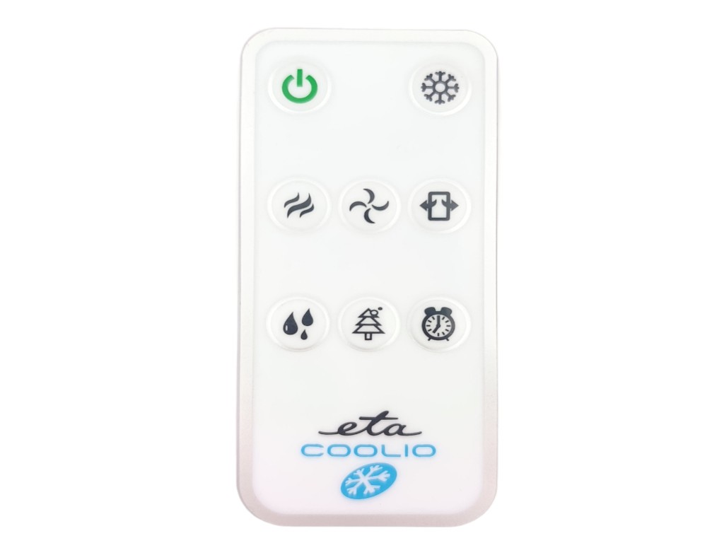 Originální dálkový ovladač ETA pro ochlazovače vzduchu řady ETA Coolio 0568. Umožňuje přesné ovládání všech funkcí přístroje na dálku – od nastavení rychlosti proudění vzduchu až po časovač či režimy chlazení.