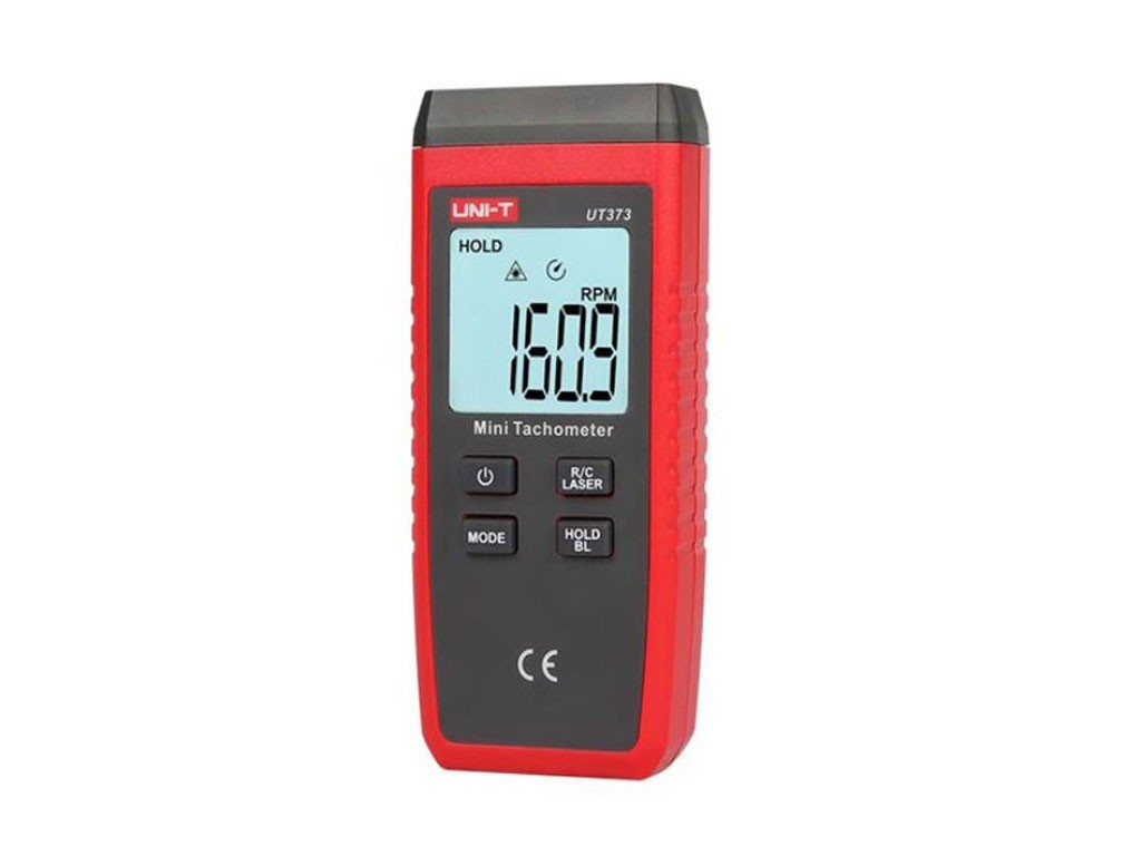 UT373 je bezkontaktní digitální otáčkoměr, který slouží k měření rotační rychlosti různých předmětů a strojních částí. Je ideální pro průmyslové, strojírenské a mechanické aplikace. Přístroj zobrazuje výsledky v otáčkách za minutu (RPM) nebo v počtu jednotlivých otáček. Měření probíhá na principu přerušení laserového paprsku, což umožňuje také počítat například kusy předmětů na výrobním páse. Přístroj disponuje režimem pro externí zdroj světla, kdy je laserový ukazatel vypnutý. Bezkontaktní měření nevyžaduje zásah do měřeného objektu a neovlivňuje jeho funkci.