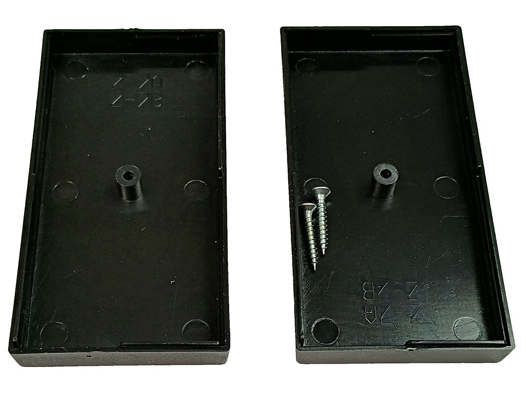 Jedná se o dvoudílnou krabičku, která se spojuje jedním vrutem. Tato krabička je vhodná pro různé aplikace a poskytuje bezpečné uložení elektronických součástek.