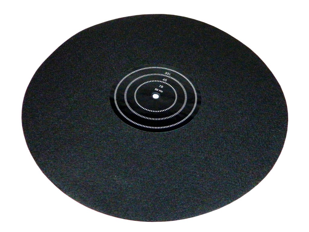 Filcová podložka pod gramofon Slipmat Strobose stroboskopickým středemPodložka je určena pro profesionální kontrolu rychlosti gramofonů. Stroboskopický střed umožňuje přesné nastavení otáček pro 33 1/3, 45 a 78 otáček (50Hz).