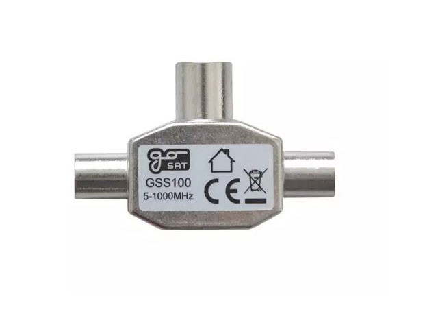 Anténní rozbočovač GoSat GSS100 je určen pro rozdělení TV signálu ke dvěma účastníkům. Tento model je vyroben z kvalitního kovu a zajišťuje spolehlivý přenos signálu. Vybaven je IEC konektory a pokrývá frekvenční pásmo od 5 do 1000 MHz.