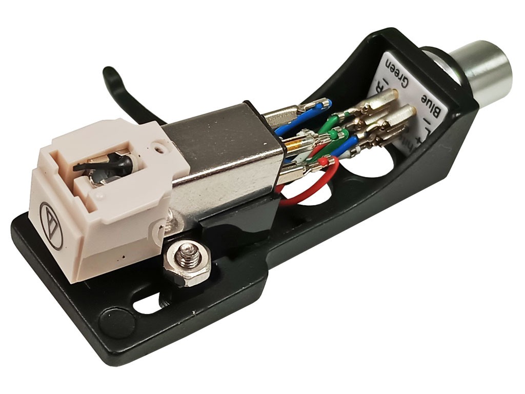 Kompletní magnetodynamická přenoska Audio-Technica AT-3600 včetně hrotu a držáku. Přenoska má standardní uchycení pomocí šroubků s roztečí 12,7 mm (1/2"). Určena pro domácí HiFi použití, instalována přenoska AT-3600.