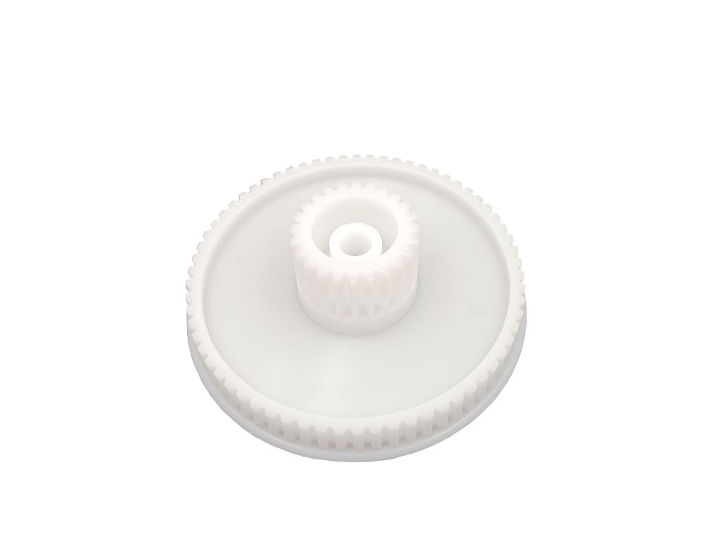 Ozubené dvojkolo a řemenice určená pro kuchyňský robot Eta Praktik 0024. Tato komponenta zajišťuje efektivní přenos síly hlavní hřídele, což je klíčové pro optimální výkon robota. V případě potřeby výměny je důležité zvolit originální díl, aby byla zaručena maximální spolehlivost a dlouhá životnost.