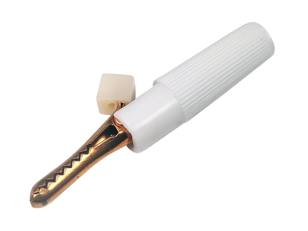 Izolovaný měřicí krokodýlek na banánek - bílý