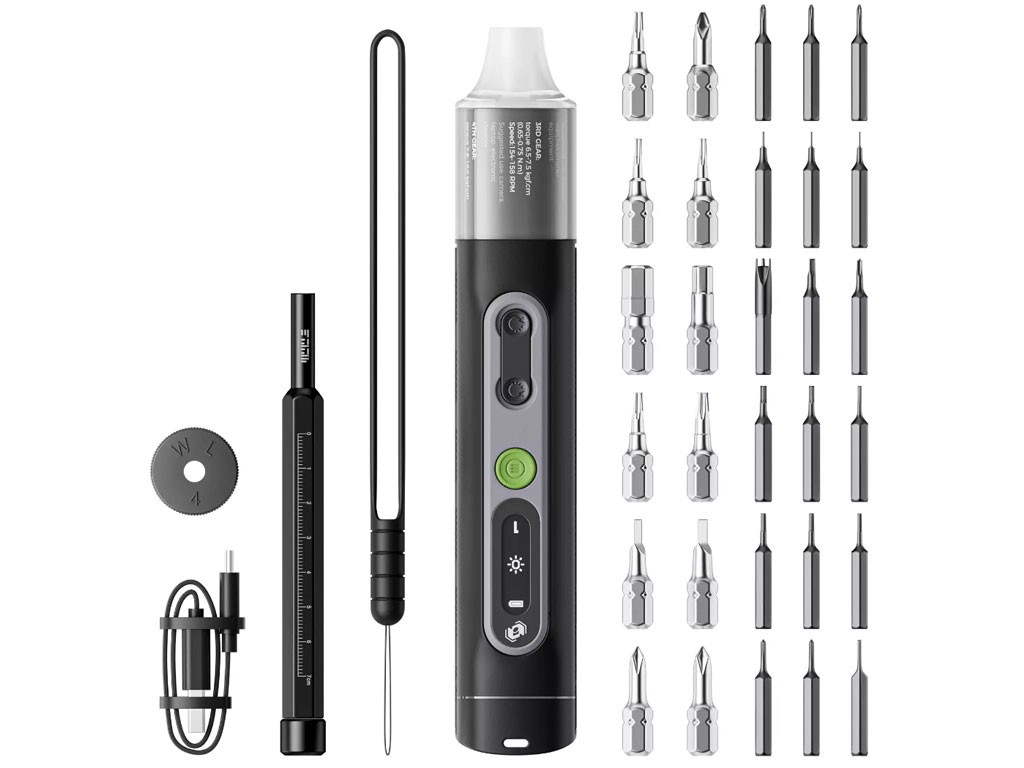 Aku elektrický šroubovák s patentovanou upínací hlavou pro použití běžných bitů H6.3 a mikrobytů H4. Osvětlení s intenzitou 1500 - 1600 lm, které eliminuje stíny a umožňuje pohodlnou práci i v tmavých prostorách. Osvětlení lze také použít jako běžnou svítilnu s funkcemi stroboskopického blikání a SOS.