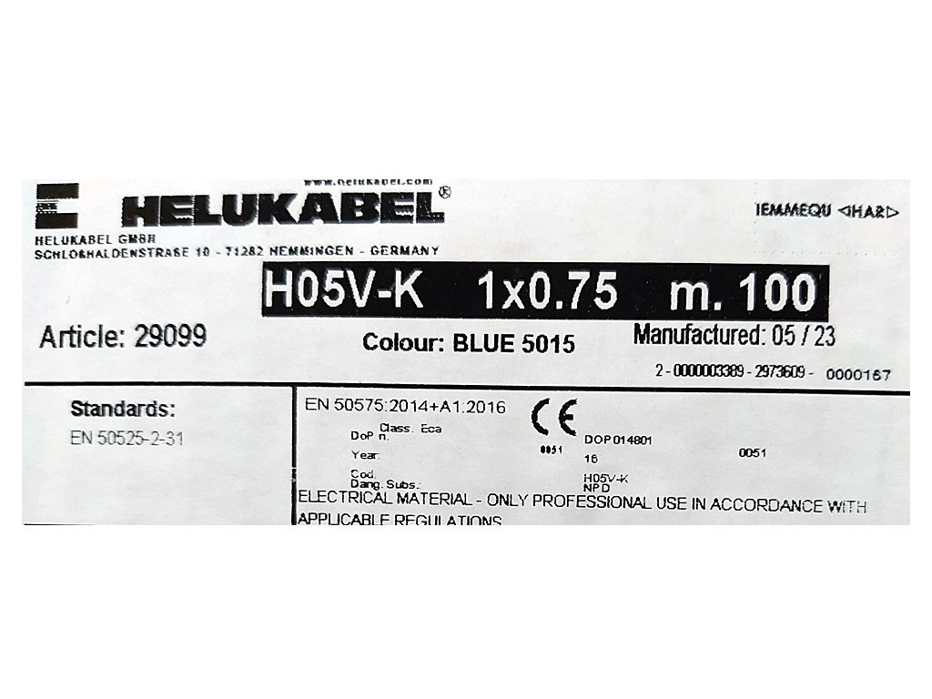 Kabel HELUKABEL 29099 H05V-K 1x0.75mm² modrý