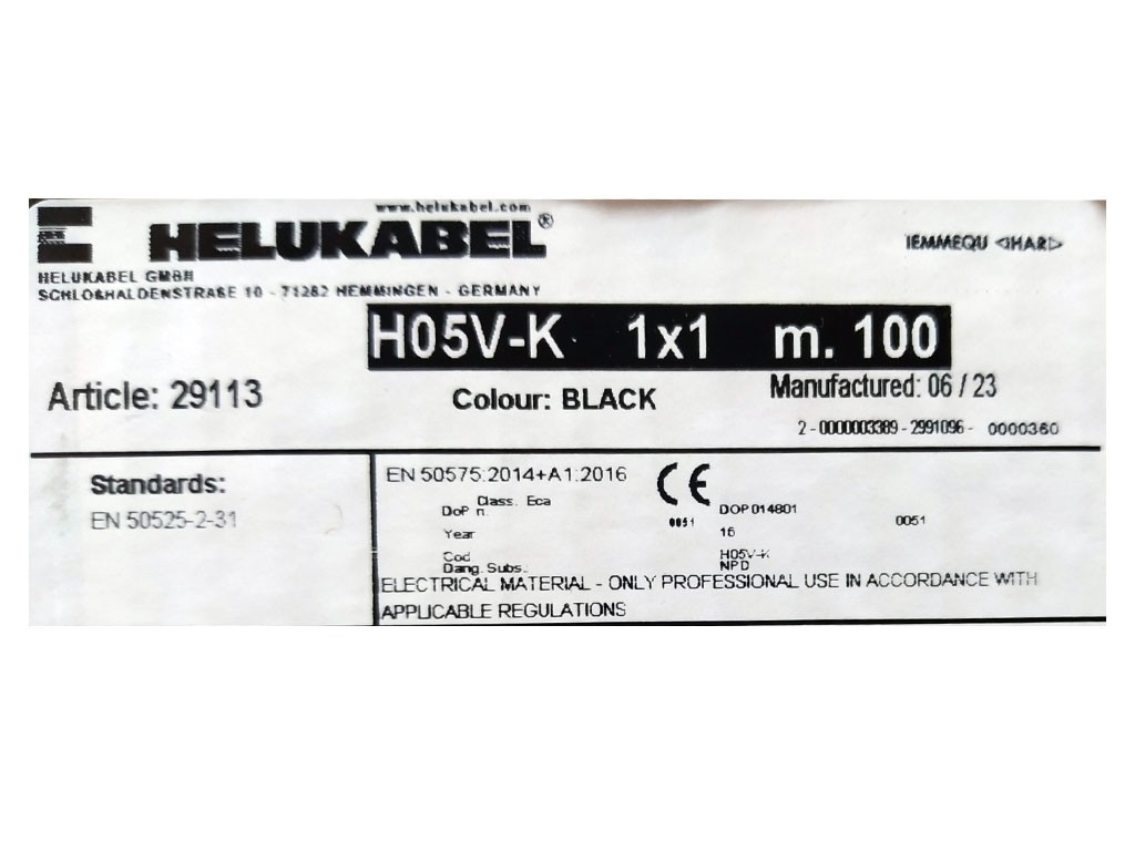 Kabel HELUKABEL 29113 H05V-K 1 x 1 mm² černý