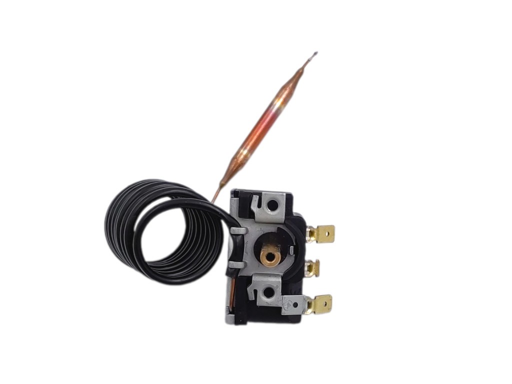 Kapilárový termostat je univerzální náhradní díl pro pračky, který zajišťuje správnou regulaci teploty. Tento model je navržen pro provozní rozsah teplot od 35 do 95 °C a je vybaven dvěma vývody. Je ideální pro nahrazení poškozených komponentů v pračkách.