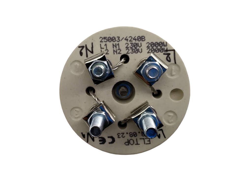 Keramické topné těleso 4000 W / 2000 W 230 VZakázkové topné těleso pro elektrokotle a bojlerKeramické topné těleso je určeno pro nepřímý ohřev vody a nabízí výkon 2000 W 230 V DC + 2000 W 230 V. Je vhodné pro použití v různých aplikacích, jako jsou elektrokotle a bojlery.