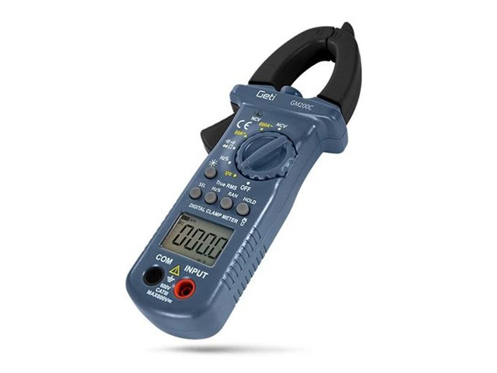 Klešťový digitální multimetr GETI GM200C je navržen pro měření stejnosměrného i střídavého napětí, střídavého proudu, odporu, kapacity a dalších funkcí. Je vybaven přehledným a podsvíceným displejem, což usnadňuje čtení naměřených hodnot.