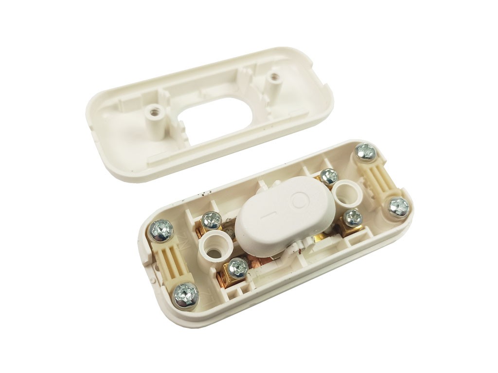 Vypínač šňůrový, který slouží k ovládání elektrických zařízení. Tento model je navržen pro napětí 250V a maximální proud 2,5A. Je vyroben z kvalitního plastu a je určen pro jednoduchou instalaci do elektrických obvodů.
