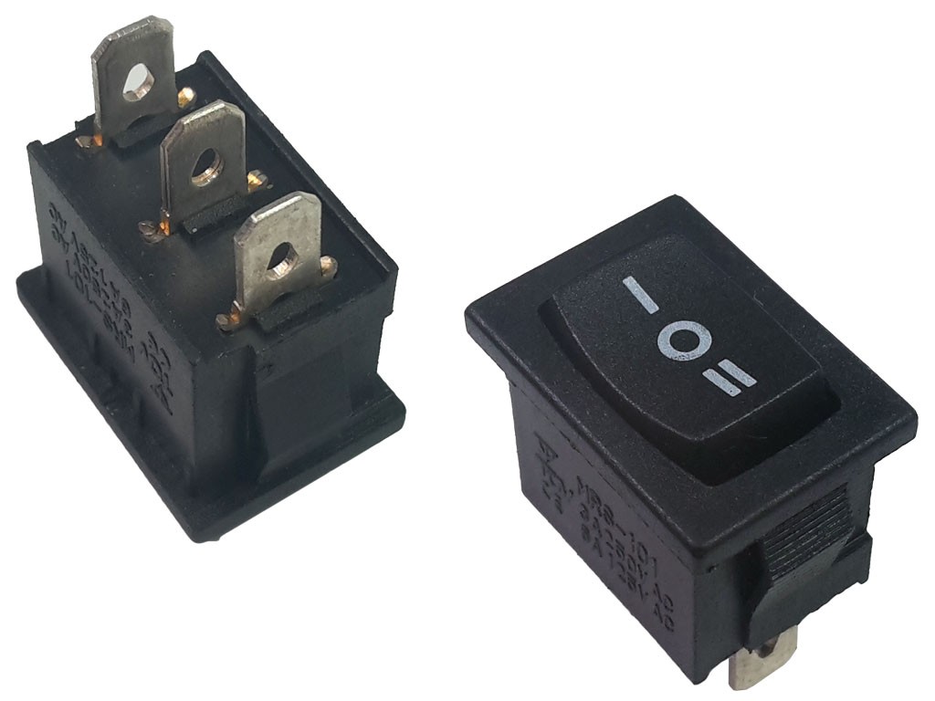Tento kolébkový přepínač je určen pro použití v elektrických obvodech s napětím 250V a proudem do 3A. Vyznačuje se černým hmatníkem a nesvítící konstrukcí. Přepínač se automaticky vrací do OFF polohy po uvolnění.