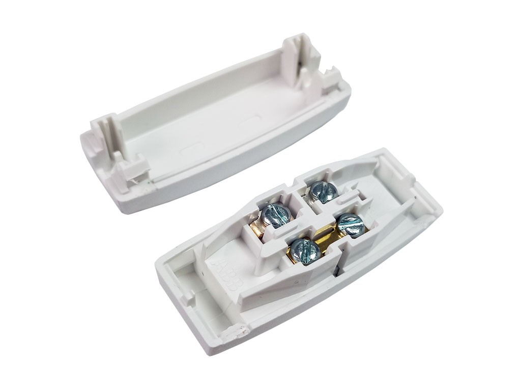Mezišňůrový kolébkový vypínač ABB 3251-01915 je 1-pólový ON-OFF spínač s maximálním proudem 2.5A a napětím 250V AC.