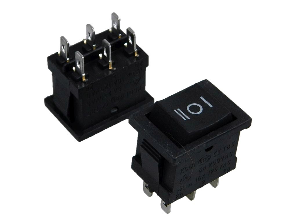 Kolébkový vypínač KCD1 černý ON-OFF-ON s 6 vývody