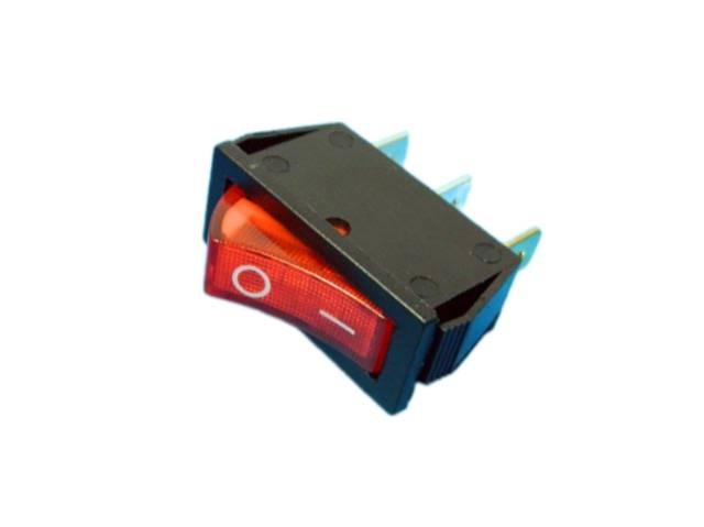 Kolébkový vypínač Ninigi, červený, 15A/250VAC, doutnavka, SPST.