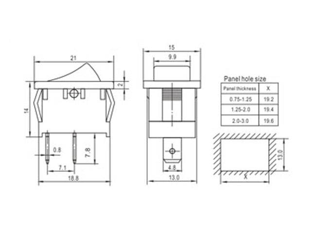 - Rozměry montážního otvoru: 19.3 x 12.9mm