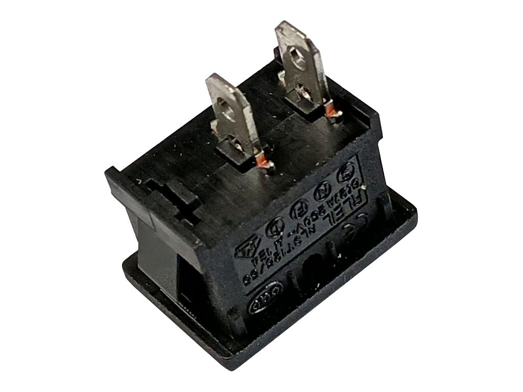 Kolébkový vypínač RLEIL RL3-1-11-G-2-BK, 6A / 250V ON-OFF černýKolébkový vypínač typ RLEIL RL3-1-11-G-2-BK je černý ON-OFF přepínač, který umožňuje spínání elektrických zařízení s maximálním zatížením 6A při napětí 250V AC. Tento vypínač je určen jako náhradní díl pro masomlýnek Zelmer ZMM 4048 a další kompatibilní zařízení.