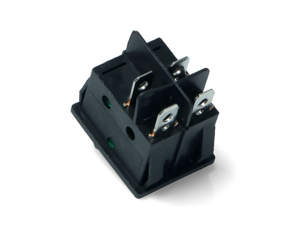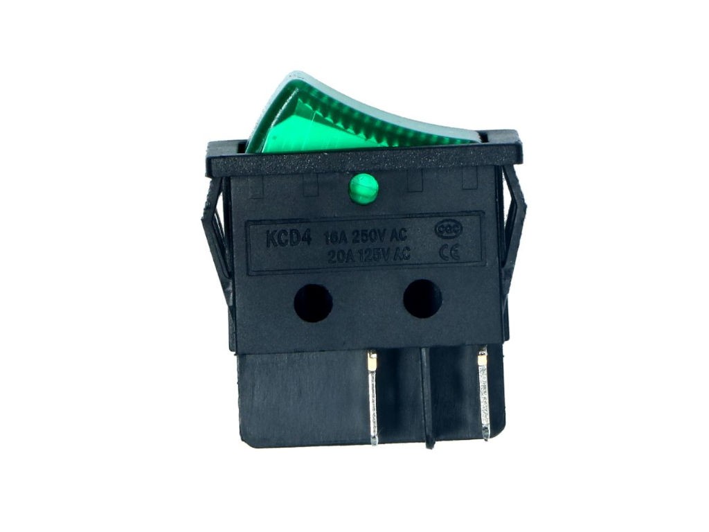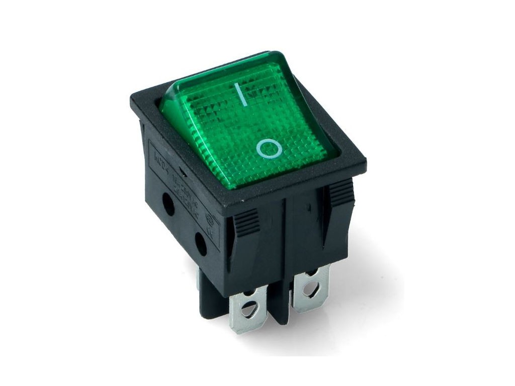 Kolébkový vypínač s podsvitem zelený 230V / 15A KCD4