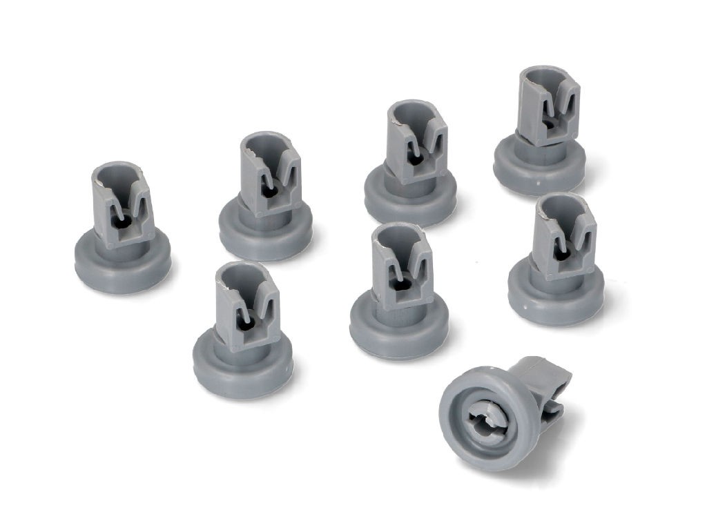 Rozbitá kolečka myčky mohou způsobit, že horní koš myčky nádobí nebude hladce klouzat ven a dovnitř. Výměna je jednoduchá: stará kolečka se vysunou a na jejich místo se nasunou nová.