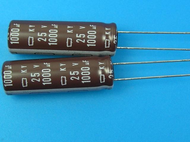 Kondenzátor elektrolytický 1000uF/25V 105°C Nippon KYKondenzátor s nízkou impedancí a dlouhou životností, ideální pro použití v impulzních zdrojích.