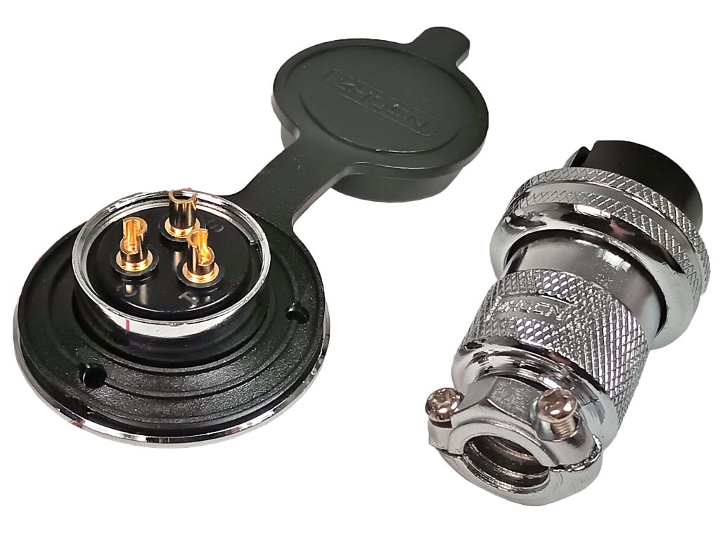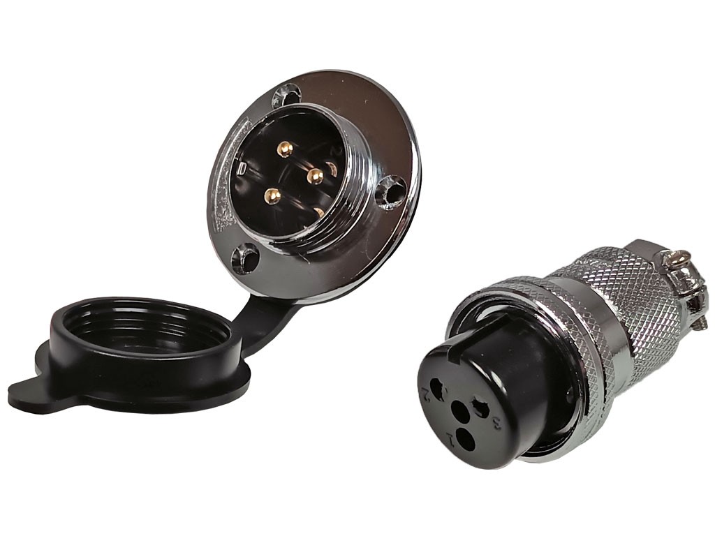 Konektor DF25 GX25, 1 pár, 3 piny, panelová zástrčka a kabelová zásuvkaTento letecký konektor je určen pro použití v aviatice a prodává se jako pár, který zahrnuje 1x panelovou zástrčku (samec) a 1x kabelovou zásuvku (samice).
