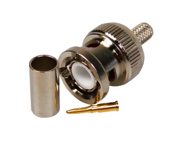 Krimpovací BNC konektor s impedancí 50Ohm, určený pro kabely RG58C/U a RG141. Tento konektor je ideální pro audio a video aplikace, zajišťující spolehlivé připojení a přenos signálu.