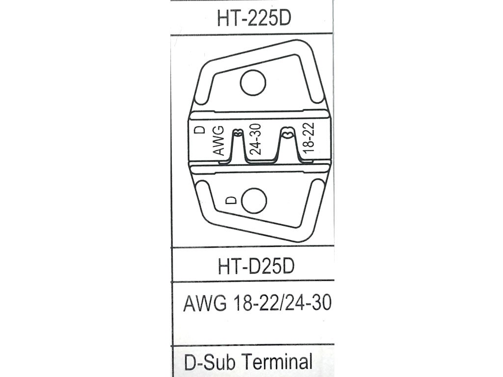 Krimpovací kleště HT-225D jsou určeny pro efektivní krimpování konektorů D-Sub a V35. Tyto kleště umožňují krimpování různých průměrů vodičů a jsou vybaveny ergonomickými návleky na rukojetích pro pohodlné použití.