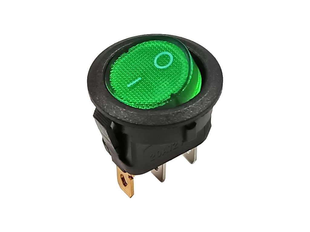 Kulatý kolébkový vypínač 1 pólový 12V DC / 16A prosvětlený zelený
