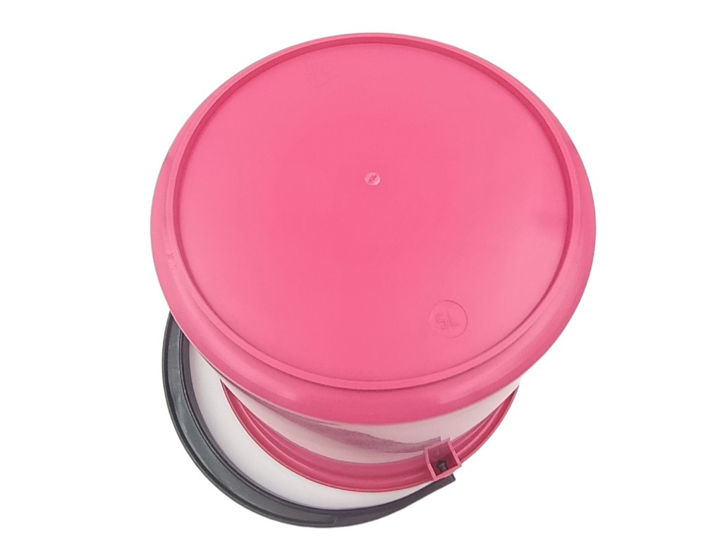 Plastový kbelík 5l s měrkou a uchem:Plastový kbelík o objemu 5 litrů je vyroben z pevného plastu a je vybaven praktickým uchem pro snadné přenášení. Tento kbelík je dodáván v různých barevných variantách podle aktuální skladové dostupnosti.