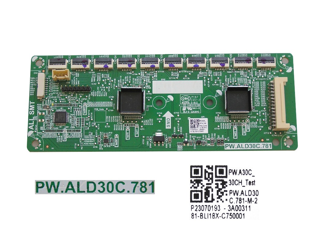LCD modul základní deska je určena pro modely televizorů značky Changhong. Tento konkrétní model, JUC7.820.00157653, je kompatibilní s hlavní deskou C550U15-E3-L(G31) a HLS62FJ-IU-1.