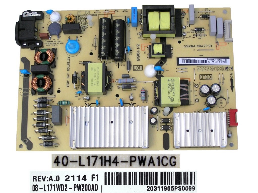 LCD Power Supply Board TCL 08-L171WD2-PW200AD / 40-L171H4-PWA1CGKompatibilní s TCL 50" LED TVLCD modul zdroj určený pro TCL televizory poskytuje spolehlivé napájení a optimální výkon. Tento model je kompatibilní s následujícími zařízeními: