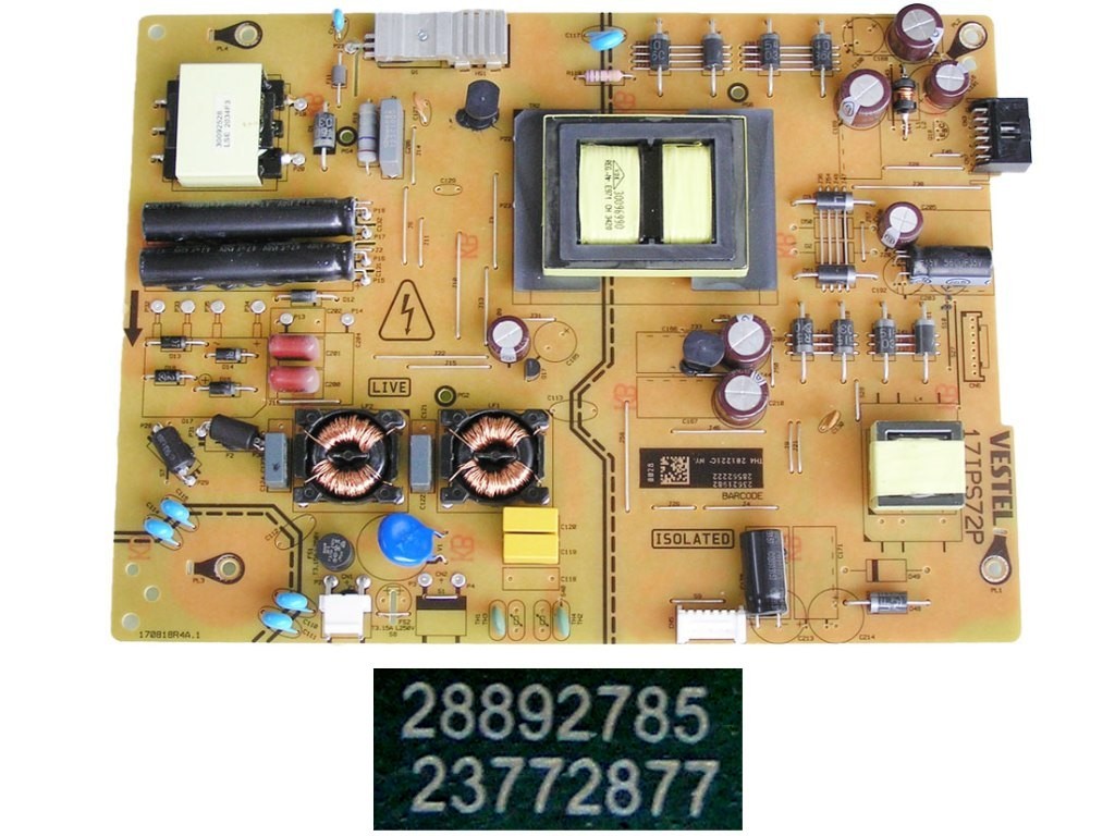 LCD zdrojová deska 17IPS72 / SMPS POWER BOARD Vestel 23772877Tato zdrojová deska je určena pro LCD a LED televize značky Vestel. Je kompatibilní s modely: