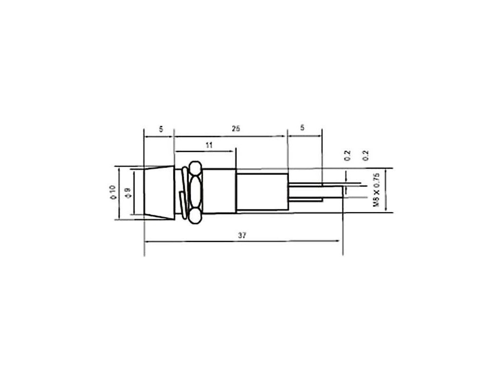 LED kontrolka zelené barvy určená pro napětí 12V AC a 12V DC. Tento model je vybaven kovovou objímkou a závitem M8, což zajišťuje vysokou odolnost a spolehlivost. Kontrolka má vnitřní parabolu pro optimalizaci rozptylu světla a je vhodná pro instalaci do otvoru o průměru 8 mm.