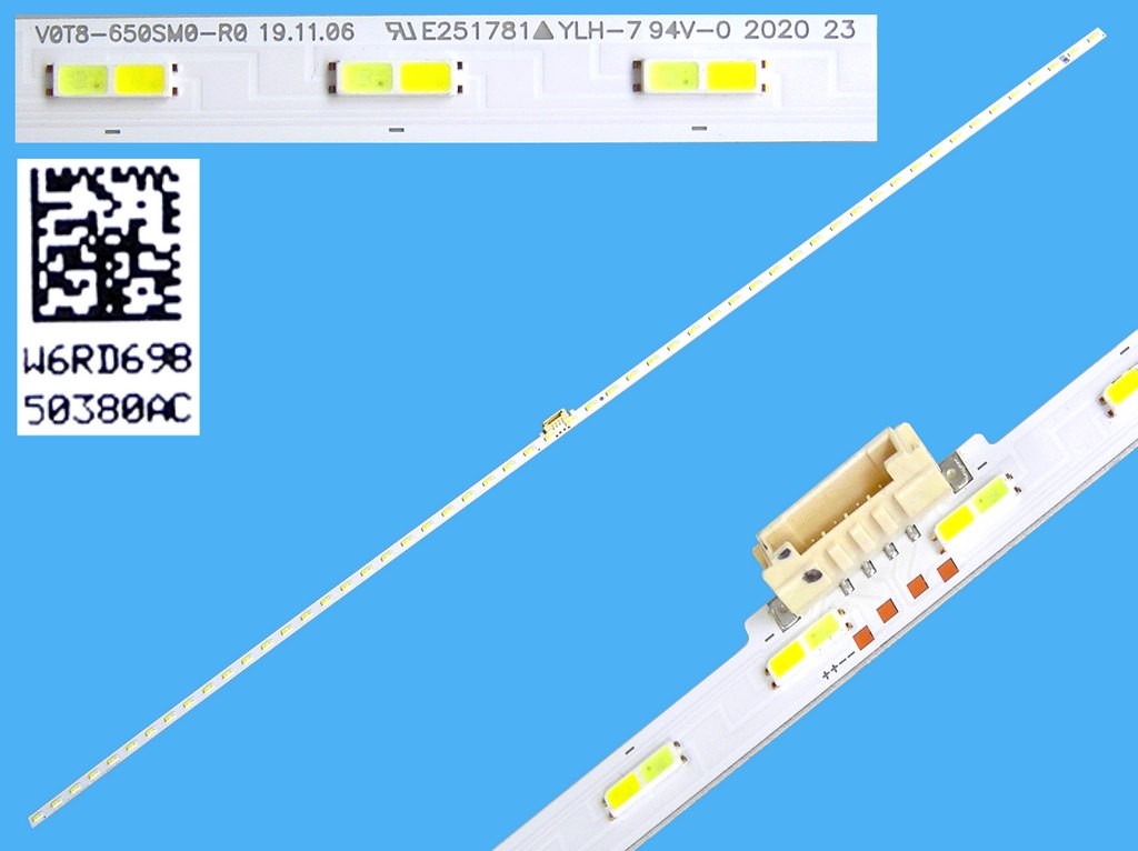 LED podsvit EDGE 707mm pro Samsung 65" - 54 LED (BN96-50380A, V0T8-650SM0-R0)LED podsvit LCD panelu 65" SamsungLED podsvit v provedení EDGE je určen pro LCD panely Samsung o úhlopříčce 65 palců. Tento produkt představuje jednu polovinu celkového podsvitu, který se skládá ze dvou identických částí.