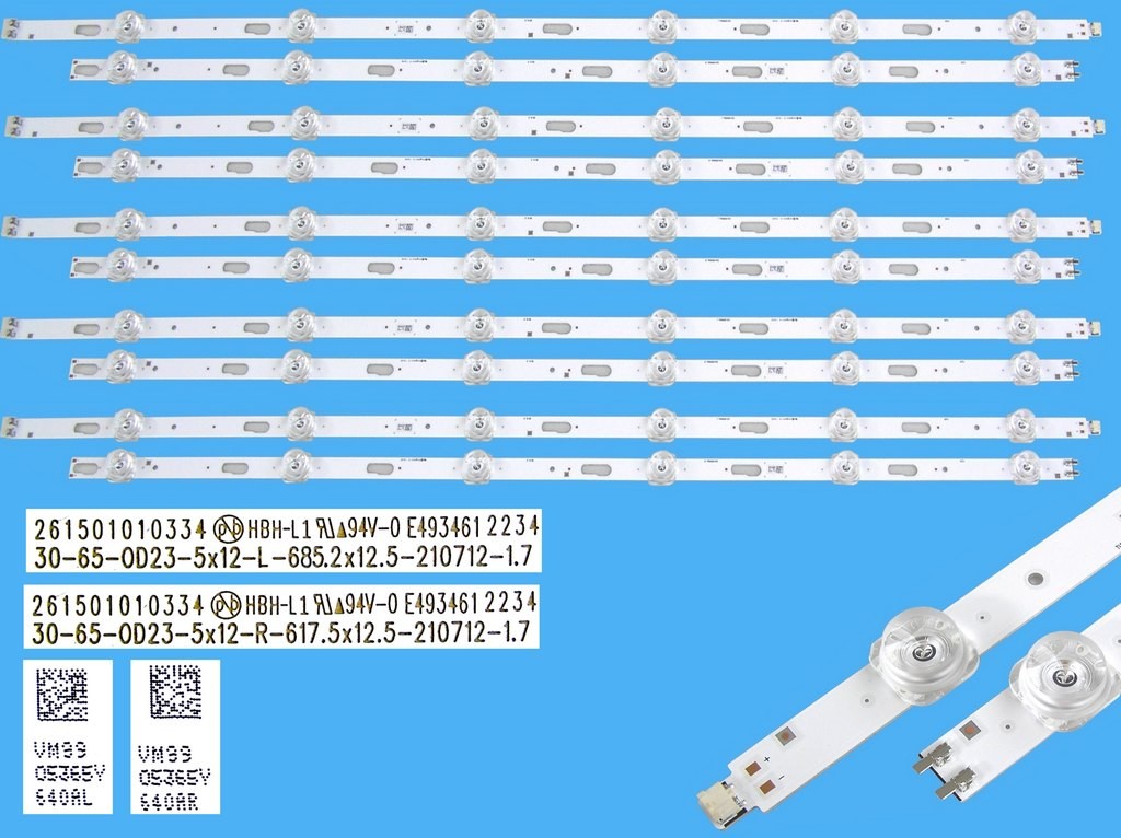 LED podsvit sada Samsung SVC650AG6 pro LCD panel 65"Kompletní sada LED podsvitu pro LCD televizory Samsung. Tato sada obsahuje 10 pásků, které jsou určeny pro modely s úhlopříčkou 65 palců. Originální díl Samsung je kompatibilní s modely jako je UE65AU7172. Sada obsahuje 5 kusů levých a 5 kusů pravých pásků, které se zasouvají do sebe a vytvářejí tak jednu kompletní linii.