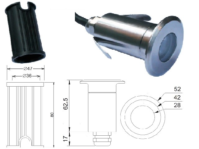 Nerezové podvodní světlo LED na držáku pro upevnění.