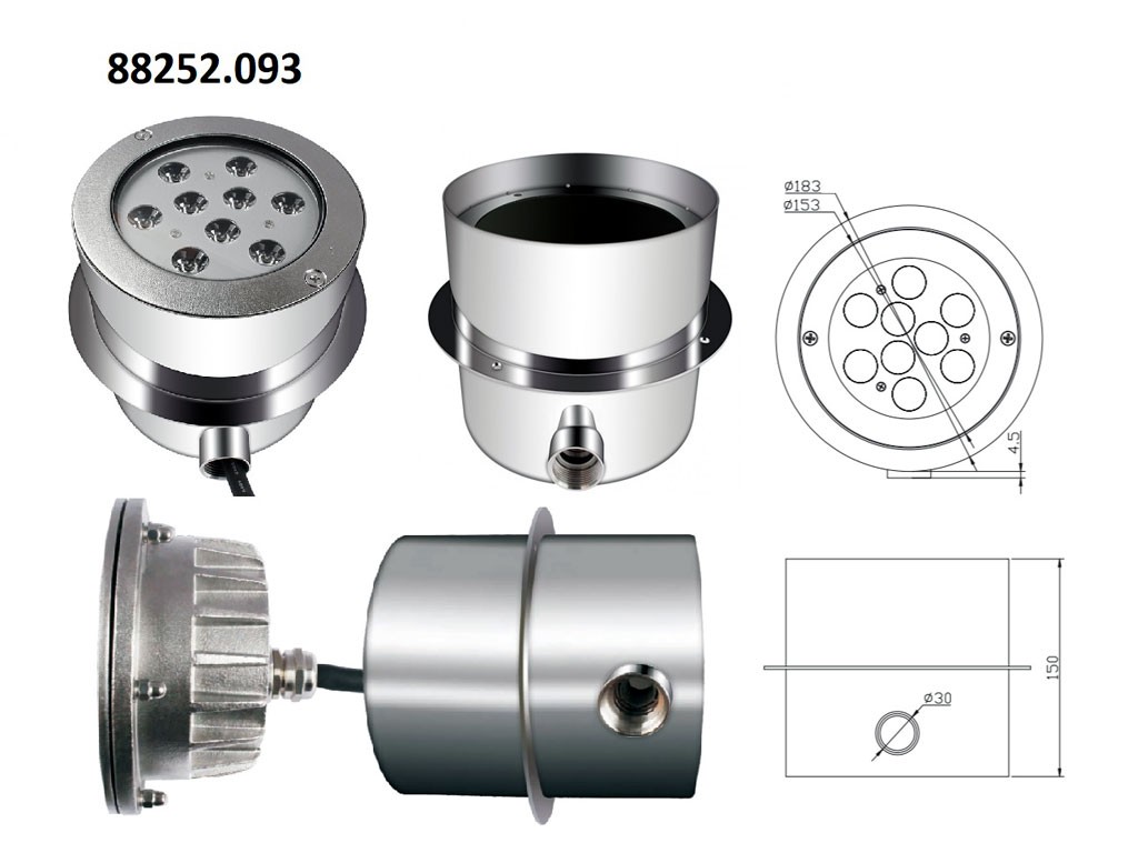 LED Světlo RISE nerez 9x3W, 3000K, IP68, 24V DC