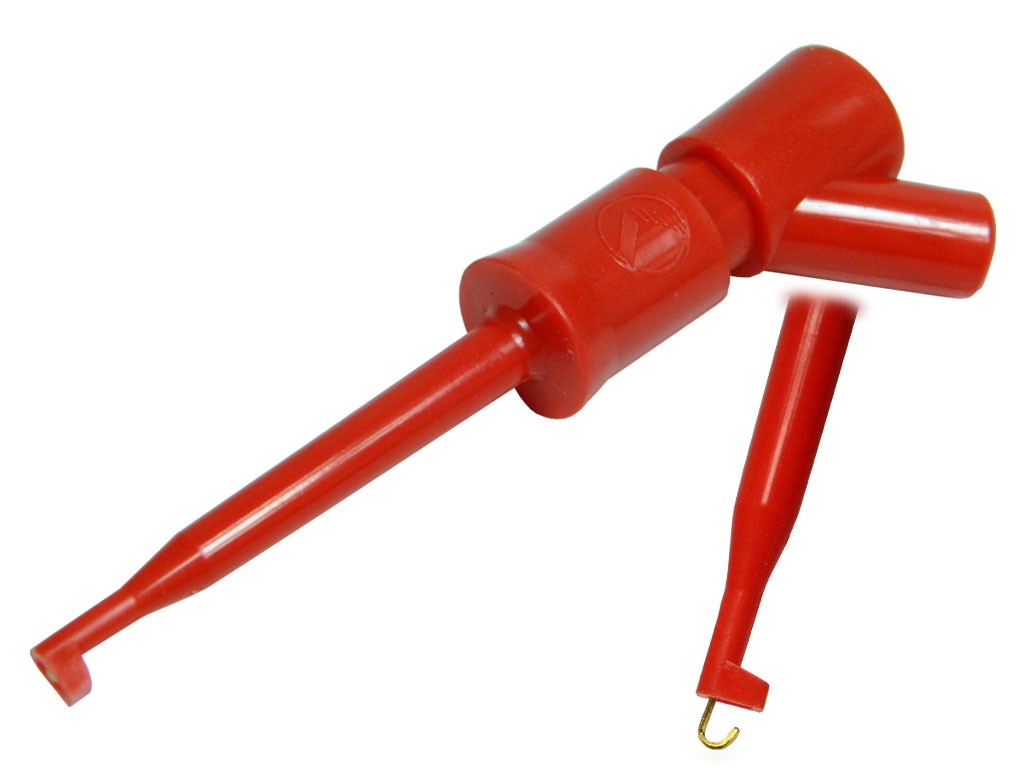 Měřicí hrot s háčkem Hirschmann KLEPS2-BU RT - červený