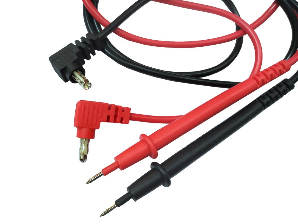 Úhlové částečně kryté banánkové šňůry s hrotem C jsou ideální pro připojení měřících přístrojů. Délka šňůr je 82 cm a maximální zatížení je 1 A. Tyto šňůry jsou určeny pro přesné měření a snadné připojení.