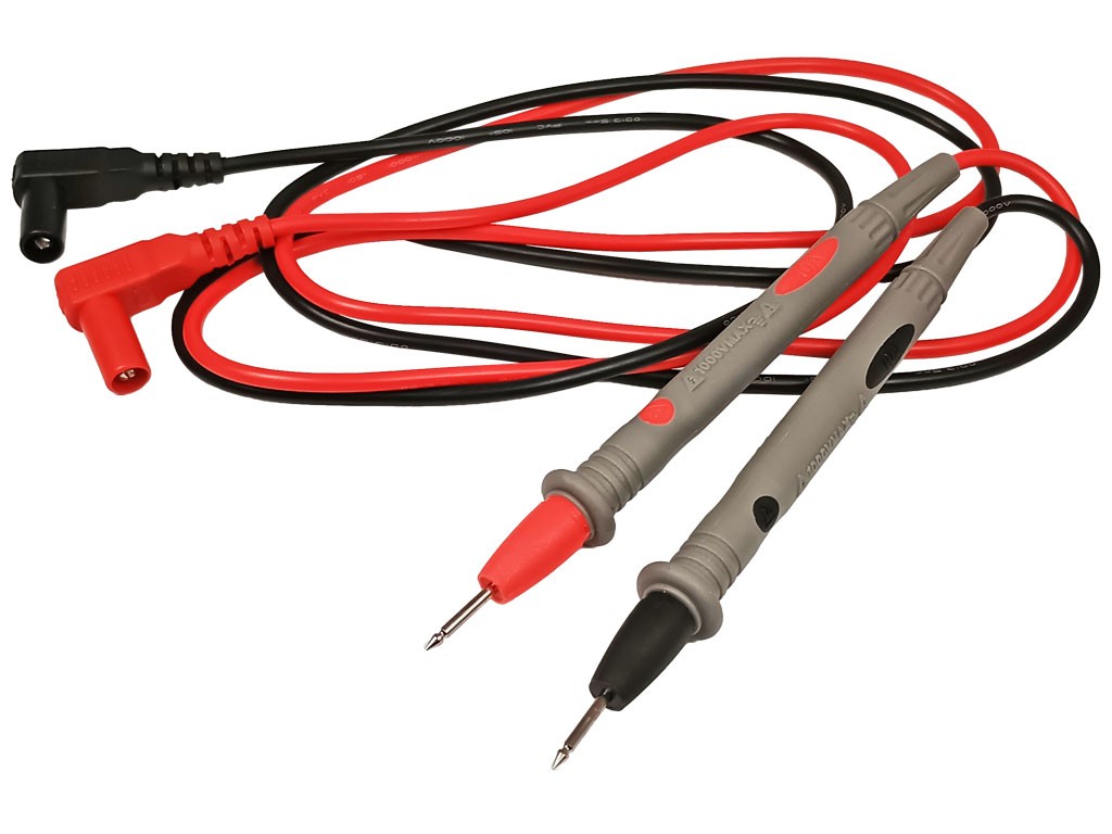 Úhlový plně krytý banánek s měřícím hrotem o délce 145 mm. Tyto šňůry jsou určeny pro měření elektrických parametrů a mají maximální zatížení 1 A. Celková délka šňůr činí 110 cm, což zajišťuje pohodlné používání při práci s měřícími přístroji.