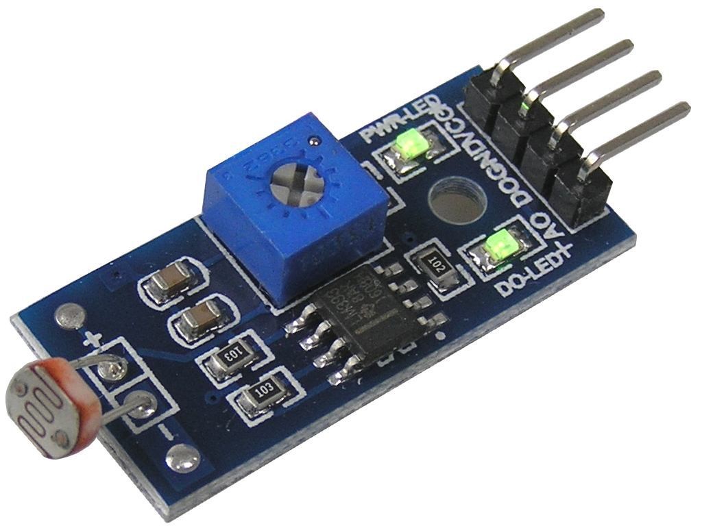Modul snímá osvětlení pomocí fotoodporu. Citlivost lze nastavit trimrem přímo na desce modulu. Pracovní napětí modulu je 2 - 5V, které je limitováno použitým komparátorem (LM393).