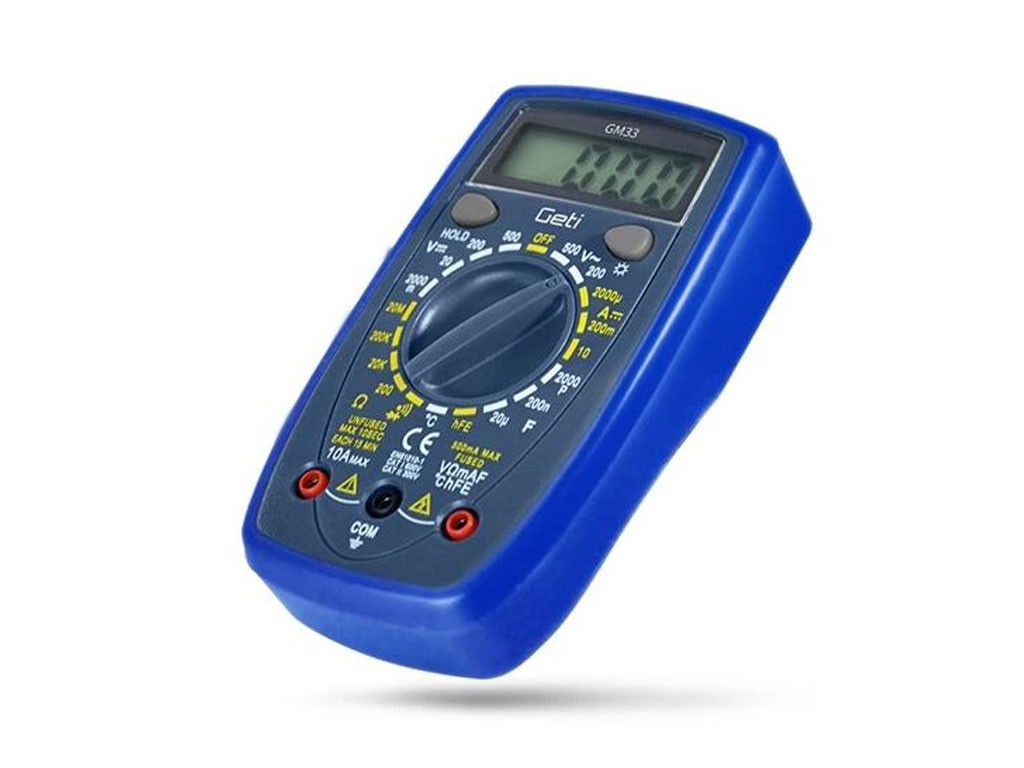 Multimetr GETI GM33A je určen pro měření široké škály elektrických veličin, včetně napětí (DCV a ACV), proudu (DCA), odporu, kapacity a teploty. Tento přístroj je vybaven přehledným LCD displejem s podsvícením, které zajišťuje snadnou čitelnost naměřených hodnot i za horších světelných podmínek. Mezi další užitečné funkce patří indikace slabé baterie, ochrana proti přetížení, testování diod, měření kontinuity a testování tranzistorů. Kompaktní rozměry a nízká hmotnost přístroje usnadňují manipulaci, a to i v těžko přístupných místech. Multimetr GETI GM33A se stane spolehlivým pomocníkem nejen v dílnách, ale i v domácnostech.