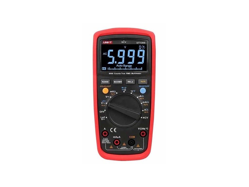 Multimetr UNI-T UT139S Digitální True RMS CAT III 600VMultimetr UNI-T UT139S je profesionální měřící přístroj s klasifikací True RMS a ochranou CAT III 600V, navržený pro elektrikáře a techniky. Tento model nabízí široké spektrum funkcí pro měření distribučních sítí v budovách. Multimetr splňuje certifikaci cETLus a obsahuje řadu pokročilých funkcí, jako jsou: